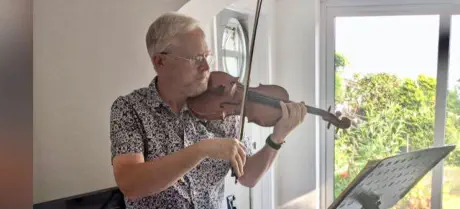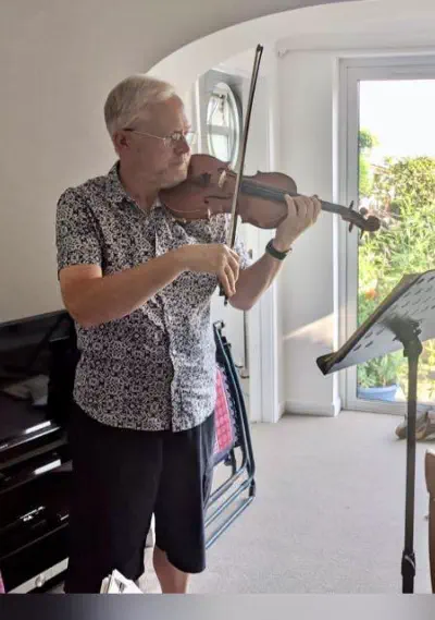 He plays for fun in string quartets and for various choirs and larger ensembles in Cornwall, including Three